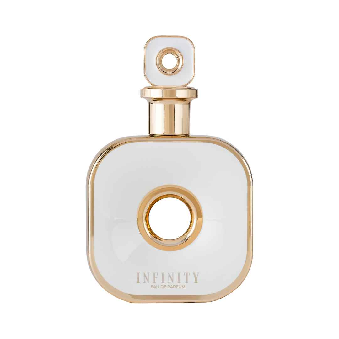 Armaf Infinity Gold is a contemporary floral woody musk composition designed for the modern woman. Launched in 2024, this fragrance opens with a refined blend of pear, lavender, and rose, evolving into a heart of ylang ylang and jasmine. The composition settles into a warm, sensual base of musk, vanilla, and moss, creating an elegant and enduring signature scent.