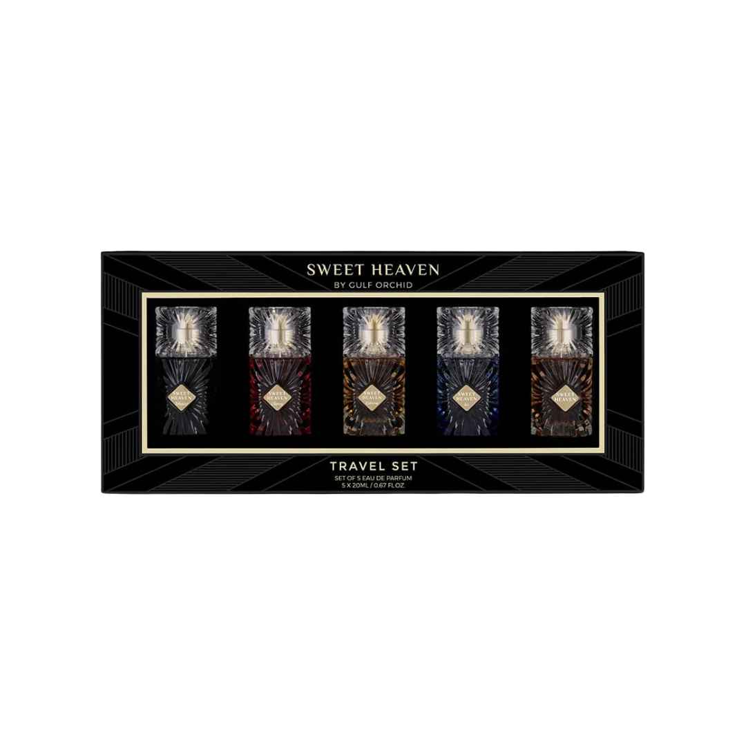 Discover the art of fragrance versatility with the Gulf Orchid Sweet Heaven Travel Set—an elegant collection featuring five distinct 20ML Eau de Parfum expressions. Each bottle unveils a different facet of the Sweet Heaven line: the classic Sweet Heaven, the intense Extreme, the fruity Cherry, the refreshing Ice, and the warm Tobacco. Ideal for the discerning traveler or as a thoughtful gift, this curated set ensures you have the perfect scent for any occasion. Experience sophistication in motion with this refined fragrance companion.